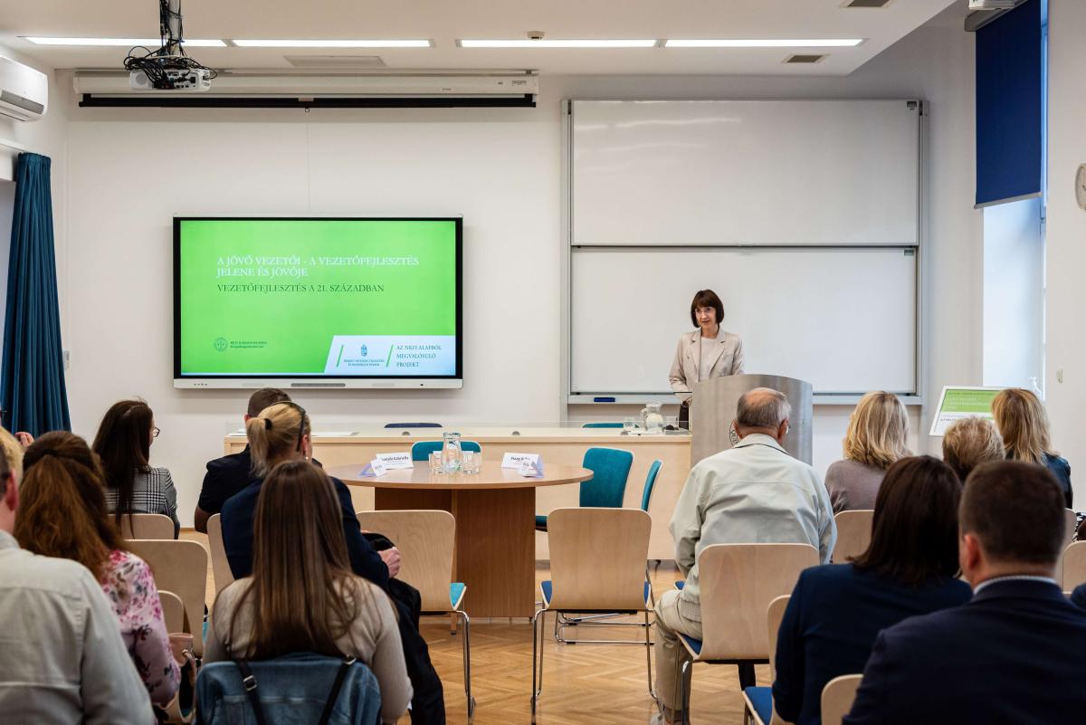 Rövid előadások következtek dr. Vitai Zsuzsanna (AI és a tanulás, a versenyképesség megőrzése érdekében), dr. Kuráth Gabriella (A jövő vezetői – a Z-generációs vezetők), dr. Merza Péter (Fenntarthatóság a vezetésben) jóvoltából.