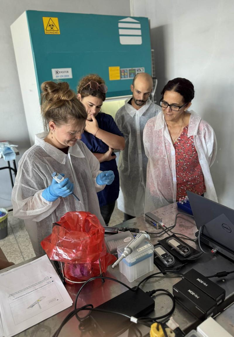 A korábbi expedíciókon is mindig igyekeztünk bevonni a helyi kutatókat és hallgatókat, ez most sem volt másképpen. A vírusgenomok szekvenálását ott helyben, mobil laboratórium segítségével végeztük el szoros együttműködésben a helyi kutatókkal és fiatal szakemberekkel, akik nemcsak részt vettek a mintakezelésben és a szekvenálási munkában, hanem gyakorlati képzést is tartottunk számukra, bemutatva a teljes munkafolyamatot.