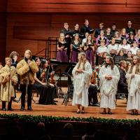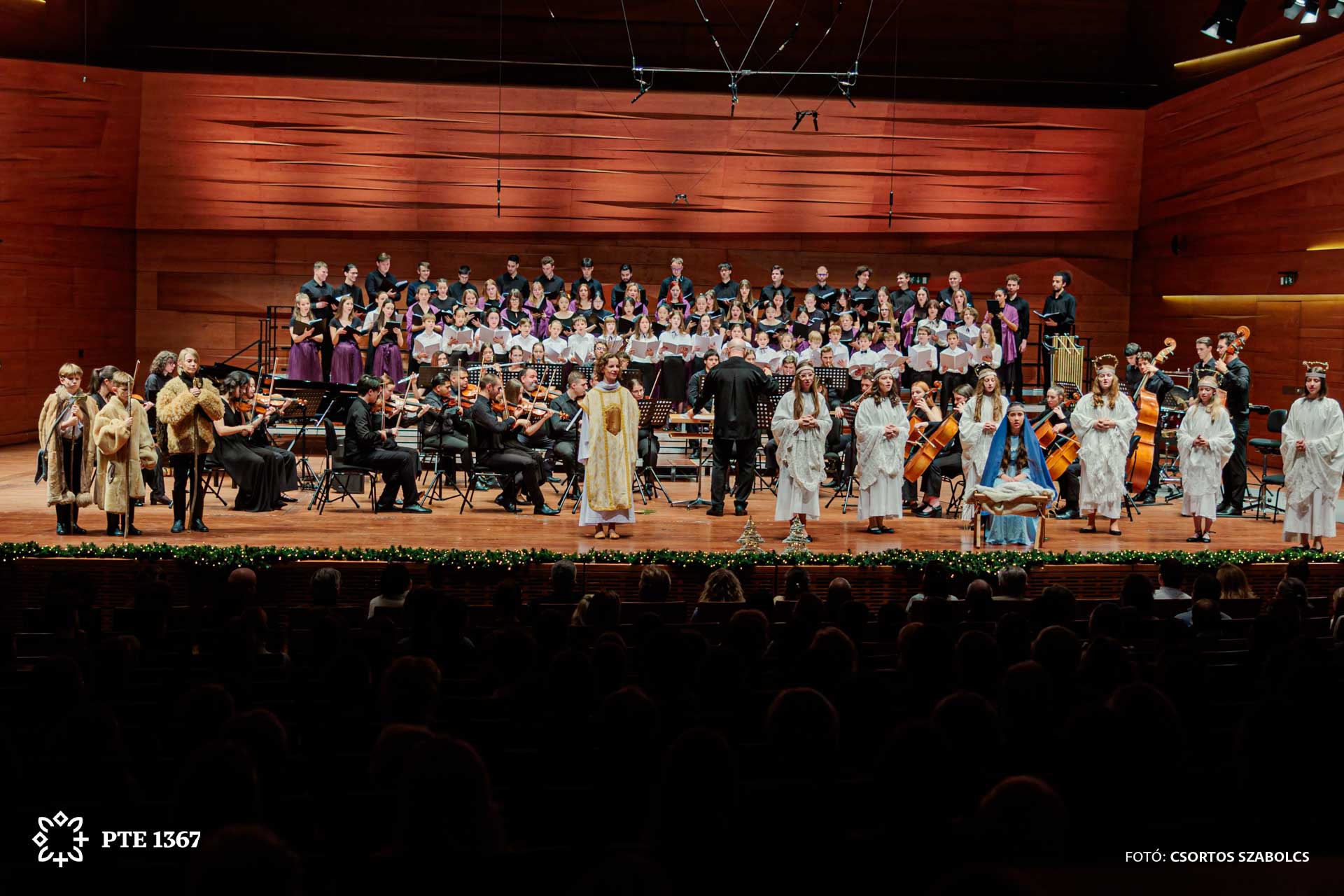 Az ünnepi hangversenyen fellépett a PTE Nőikar, a PTE Egyetemi Kórus, a Szent Mór Iskolaközpont kórusa és betlehemező diákjai és a Pécsi Szaxofonegyüttes.